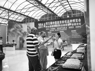 圖為兩位來自埃及的種子經銷商向上海種都種業科技有限公司的工作人員咨(zi)詢辣椒品種。