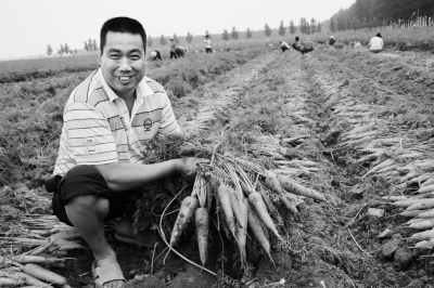 近日,山(shan)東(dong)省(sheng)廣(guang)饒縣樂安街(jie)道西(xi)十里堡村村民侯(hou)慶坤引進的雜交“牧田一號”胡(hu)蘿卜改(gai)良品(pin)(pin)種獲得大(da)豐收,種出(chu)的胡(hu)蘿卜產量(liang)好、成品(pin)(pin)率(lv)高(gao),畝產收購價(jia)格(ge)達到了每畝4500元,比普通胡(hu)蘿卜收購價(jia)高(gao)1500多元,裝箱出(chu)口合格(ge)率(lv)也(ye)比普通胡(hu)蘿卜高(gao)20多個(ge)百分點(dian)。圖為村民侯(hou)慶坤正在高(gao)興地收獲改(gai)良品(pin)(pin)種胡(hu)蘿卜。 馬慶亮高(gao)舉攝