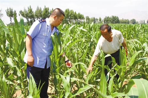 隨后,記者同哈林格爾工商所所長崔曉強、經銷商韓楞一同來到高玉貴的玉米地。