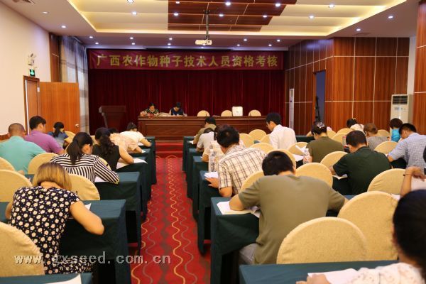 8月5日,2014年度全區農作物種子技術人員(種子檢驗、貯藏、加工人員)資格考核、考評在玉林市福滿地賓館進行,來自全區各種子企業共170多名技術人員參加專業技術考核和技能考評。年度考核、考評工作由自治區種子管理局組織,玉林市種子管理站協辦,由自治區種子管理局質量管理科黃祖紋科長主持,自治區種子管理局黃宇紅副局長親臨督促指導。