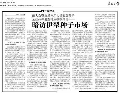 2014年5月5日,本報報道伊犁州種子“品種鑒定權”問題。