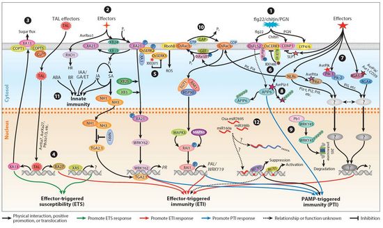 據悉,水稻是世界上最重要的糧食作物之一,其高產、穩產是全球糧食安全的重大問題。水稻生產過程中遭受各種真菌(如稻瘟菌、紋枯菌、稻曲病菌)、細菌(如白葉枯、細條病菌)、病毒(如條紋葉枯、黑條矮縮)的危害,是造成產量損失的最直接因素。近期研究表明,植物存在著與動物相似的先天免疫系統,該系統由PTI和ETI兩個層次的免疫反應組成。