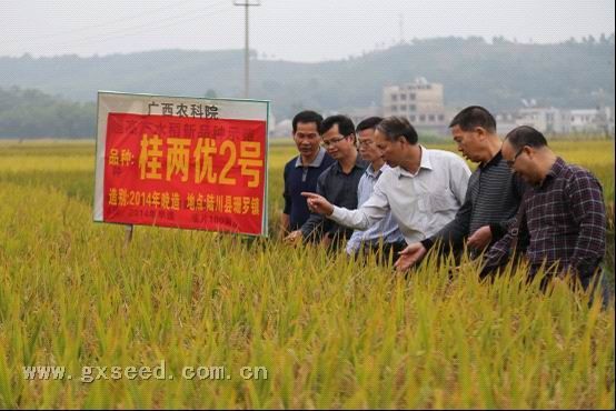 11月5日,玉林市種子管理站組織相關水稻育種、農技推廣、植保、土肥等高級農技專家,來到玉州區城北高山村水稻新品種展示、示范基地進行參觀考察。今年晚造,玉林市種子管理站針對目前種子市場品種繁多,各縣(市、區)主推品種不明顯,群眾購種選種迷茫聽風等情況,著重從轄區內種子市場上選取了銷量大,面積較多的50個品種(組合)安排集中種植。采取同一時間浸播種,同一大田同等小區,同一規格、面積,同一管理措施的辦法進行展示,以進一步集中觀察了解品種的適應性、抗逆性、豐產性的狀況,為更好地選出適宜本市主導推廣品種提供現場依據。這次鑒評活動,采取每位專家各持一份鑒評表,從其專業角度綜合評價每個品種(組合)的優缺點表現,從中優選出更適宜晚稻推廣良種。