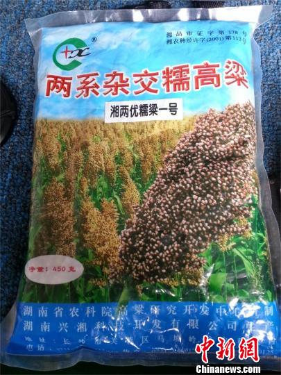 汪長松提供的種子包裝袋上寫著,兩系雜交糯高粱“湘兩優糯粱一號”由湖南省農科院高粱研究開發中心研制。