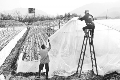 11日(ri)4日(ri),浙江(jiang)建德市乾潭(tan)鎮(zhen)乾潭(tan)村(cun)的草莓種(zhong)植(zhi)戶正忙著(zhu)組織人力(li),為草莓地(di)的鋼架大棚覆蓋(gai)上新購的薄(bo)膜,做好過(guo)冬防凍保溫(wen)措施,確保草莓冬季(ji)正常生長。由于受較強冷空氣的影(ying)響,目(mu)前當地(di)清晨的最低溫(wen)度已降至(zhi)5℃左右,比往年冷得早(zao)了一(yi)些。 寧文(wen)武攝