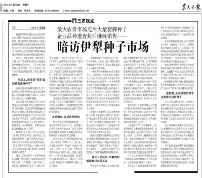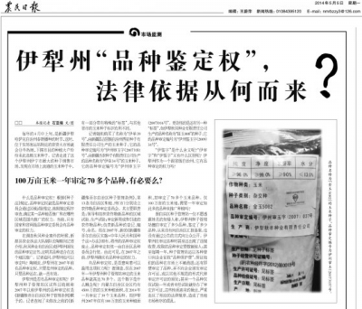 跟蹤報道 編者按:今年4月30日和5月5日,農民日報分別以《暗訪伊犁種子市場》和《伊犁州品種鑒定權法律依據從何而來》為題報道了伊犁州種子市場存在的套牌侵權、非法審定亂象,隨著打假力度加大,媒體關注度漸強,伊犁州種子市場秩序有了明顯改善。日前,伊犁州打假又有新動作,此舉既是此前系列工作的繼續也是更加強有力打假行動的開始——
