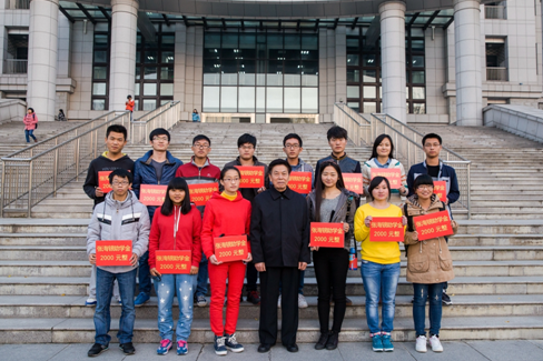 基金會理事長與受資助的安農大農學院15名學生合影