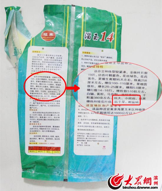 對于(yu)審定(ding)公告(gao)認(ren)定(ding)種子(zi)感大、小斑(ban)病(bing)(bing)(bing)而包裝(zhuang)袋上(shang)卻宣(xuan)傳(chuan)(chuan)抗(kang)大、小斑(ban)病(bing)(bing)(bing)的(de)情況,王信寶告(gao)訴記(ji)者,玉(yu)米斑(ban)病(bing)(bing)(bing)根據(ju)嚴重(zhong)程度依次分為(wei)1、3、5、7、9五(wu)個級別(bie),“淄(zi)玉(yu)14”的(de)審定(ding)公告(gao)認(ren)定(ding),該種子(zi)斑(ban)病(bing)(bing)(bing)發(fa)病(bing)(bing)(bing)最(zui)重(zhong)到5級。“因(yin)此,種子(zi)對斑(ban)病(bing)(bing)(bing)有(you)一定(ding)抵(di)抗(kang)能力(li),根據(ju)公司的(de)認(ren)識,包裝(zhuang)上(shang)的(de)宣(xuan)傳(chuan)(chuan)是可以的(de)。而且宣(xuan)傳(chuan)(chuan)資料由育種單位(wei)淄(zi)博魯(lu)中農(nong)作(zuo)(zuo)物(wu)研究所(suo)審核。” 王信寶告(gao)訴記(ji)者。隨后,記(ji)者聯系到魯(lu)中農(nong)作(zuo)(zuo)物(wu)研究所(suo)進行(xing)確認(ren),但其工作(zuo)(zuo)人員表示(shi),該研究所(suo)沒有(you)任何包裝(zhuang)宣(xuan)傳(chuan)(chuan)、經(jing)營種子(zi)的(de)資質(zhi)。