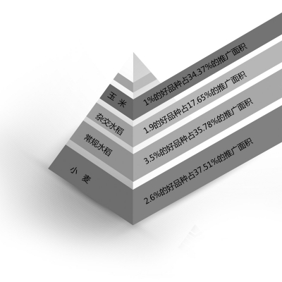 2013年推(tui)廣(guang)面積在10萬(wan)畝(mu)以(yi)上(shang)的品(pin)(pin)種有389個,推(tui)廣(guang)總(zong)面積35306萬(wan)畝(mu)。前(qian)10位品(pin)(pin)種為(wei)濟麥(mai)22、周麥(mai)22、百農(nong)AK58、西農(nong)979、鄭(zheng)麥(mai)9023、鄭(zheng)麥(mai)366、山農(nong)20、揚麥(mai)16、良星66、煙農(nong)19,推(tui)廣(guang)面積13245萬(wan)畝(mu),占小麥(mai)品(pin)(pin)種推(tui)廣(guang)總(zong)面積的37.51%。