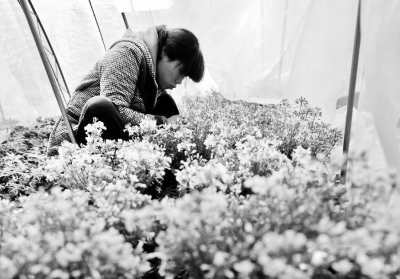 在天津市(shi)北辰(chen)區耕(geng)耘(yun)種業良(liang)種繁育基地(di)的(de)大棚里,農戶劉洪鳳正坐在地(di)上,對菜(cai)(cai)花(hua)進行人工授粉(fen),這是(shi)個細致的(de)工作,菜(cai)(cai)花(hua)的(de)花(hua)朵(duo)只有指甲蓋大小,而且一株菜(cai)(cai)花(hua)就能開(kai)出上百(bai)朵(duo)花(hua),她全憑一雙手,在棚里一干(gan)就是(shi)一整(zheng)天。
