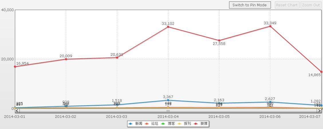圖(tu)2 最近一周關(guan)于(yu)轉基因話題的(de)媒體報(bao)道量走勢圖(tu)
