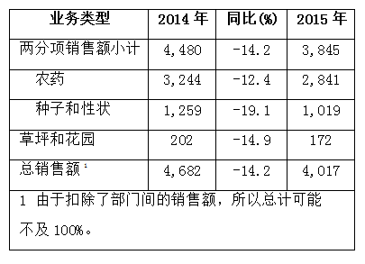 2015年一季度,先正達實現農藥銷售額28.41億美元,同比下降12.4%;若按恒定匯率(CER)計,則同比增長1%。