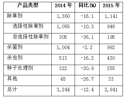 表1 先正達2015年一季度農藥銷售額