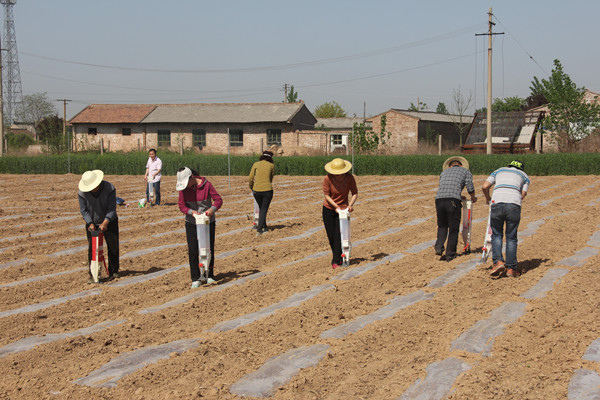 展示示范地(di)位于城(cheng)關鎮孟家莊(zhuang)村北,占地(di)20畝(mu),前(qian)茬玉米,冬季休閑,肥力中等(deng),噴灌(guan)設施到位,地(di)理(li)位置優越,交通便利。于4月24日(ri),雨后進(jin)行(xing)整(zheng)地(di)覆(fu)膜(mo),4月27-28日(ri)遇(yu)雨足墑(di)播(bo)種(zhong)(zhong),隨(sui)后將(jiang)根(gen)據品種(zhong)(zhong)各個生長關鍵時期,分品種(zhong)(zhong)進(jin)行(xing)田間(jian)觀察記(ji)載工(gong)作。
