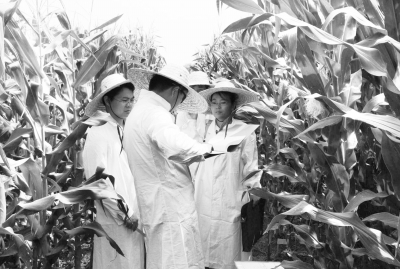 在農業部植物新品種測試公主嶺分中心試驗地田間,測試人員觀測玉米品種性狀(zhuang)表達狀(zhuang)態(田間觀(guan)測)。唐浩攝
