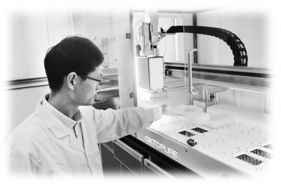 普通PCR儀(左)采用96孔板作為反應載體,相比之下,384孔的陣列式分析卷帶(右)的特性更適合高通量全自動化操作。 人工移液器和自動化液體工作站,前者手工加樣,一人一天最多完成幾百份樣品DNA提取;后者利用自動化儀器加樣,每天可以提取5000份以上的DNA樣品。 |