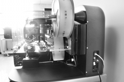 第一步,建立反應體系。陣列式分析卷帶外觀很像相機的膠卷,每張中間是384孔。隨著陣列卷帶的移動,每個小孔就自動裝好一個測試樣品,并自動完成覆膜封口。 第二步,PCR反應。樣本經過94℃高溫變性、60℃-65℃低溫退火、72℃適溫延伸三個步驟完成1個循環。一次PCR反應要做35個循環。陣列式分析卷帶,在機械傳動裝置作用下,在3個恒溫水浴鍋中循環,節約了傳統PCR儀升溫降溫的時間,也增加了實驗結果的穩定性。 第三步,熒光儀檢測。做完PCR反應,將陣列式分析卷帶放到熒光儀的入口處,卷帶會像膠卷一樣進入熒光儀,結果以不同顏色在電腦上顯示出來。