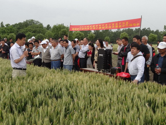 5月20日,由河南省農科院小麥所許為鋼所長主持的農業部行業科研專項“糧食作物抗災群體優化與定向減災技術研究與示范”暨高產優質強筋小麥品種鄭麥7698現場觀摩會在安徽亳州召開。會議由亳州市農科院院長楊玉亭主持,安徽農業大學副校長馬傳喜教授以及中國農科院作科所、山東省農科院作物所、石家莊市農科院、淮安市農科院、菏澤市農科院、亳州市農科院、商丘職業技術學院等國內多家研究機構的小麥專家,河南、安徽等地種子企業、種糧大戶、專業合作社和新聞媒體記者等共計300余人參加了會議。
