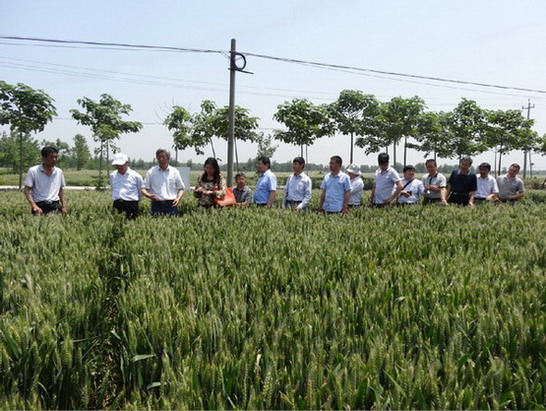 安徽農業大學副校長馬傳喜教授總結點評說,農業部行業科研專項“糧食作物抗災群體優化與定向減災技術研究與示范”針對區域性低溫、高溫、干旱、大風等災害性天氣危害頻繁現象,通過品種減災、配套栽培技術減災、農化產品減災、機械裝備減災,可實現區域性小麥高產高效優質生產。鄭麥7698示范田長勢喜人,按照當前長勢產量水平應在700公斤以上,是一個兼具高產與優質特性的好品種;在渦陽縣西陽鎮示范現場,與會人員觀摩了抗倒試驗研究示范田、增產抗倒物化產品“勁豐”示范田。與會領導和專家認為,該項目通過3年的研究,該行業科研專項單項技術成熟、示范效果好,建議進一步組裝單項技術、增加其示范面積、提高技術示范效應,為黃淮麥區小麥生產提供強有力的科技支撐。