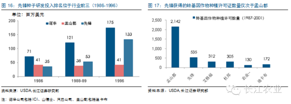 1981-1985年,農業生物科技公司中兼并或合并的數量為167起。1991-1996年,數目迅速增長至801起,其中90%的戰略聯盟為行業龍頭企業對新成立科技公司的收購。行業內的加速整合,尤其是孟山都對一系列種子公司的收購,使先鋒良種認識到只有科技和資金雄厚的公司才能贏得競爭,也促使了杜邦對先鋒良種的成功收購(在此之前先鋒曾對杜邦擁有的股權實行限制條約防止被收購)。杜邦經營范圍涉及軍工、農業、化工、石油、糧食等20多個行業,通過收購將先鋒成為公司重要戰略分支,不僅能增強其生物科技研發實力,更利于在未來至關重要的農業生物科學技術中占據一席之地。同時,杜邦對先鋒的收購能夠實現優勢互補,并獲得科研、銷售等方面的規模經濟效益。