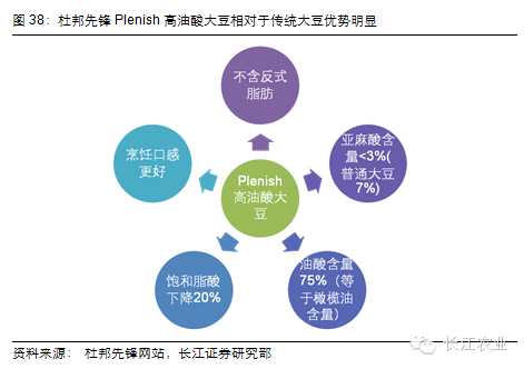 杜邦先鋒同樣非常重視其他種子類別的研發育種,并在一些領域居于行業領先地位,代表之一就是Plenish高油酸大豆。2010年,杜邦先鋒獲準在美國銷售Plenish高油酸大豆。2014年12月,中國政府批準進口其Plenish轉基因大豆。杜邦先鋒利用先進的遺傳學和尖端技術研發出高油酸大豆,且相對于傳統大豆具有明顯優勢,也是杜邦先鋒將產品創新引入食品工業的重要里程碑事件,具有較大的發展空間。