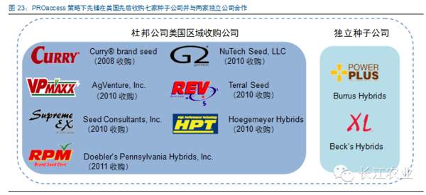 在發展過程中,杜邦先鋒的收購和整合項目僅限于種子行業內,并未進行大規模的產業鏈延伸,而是專注于種子的研發,并將育繁推、價值服務體系等環節組成一個有機產業鏈,發展成為實力雄厚的種業平臺型公司。具體為: