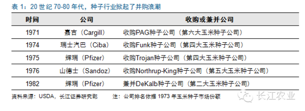 隨著各國對轉基因植物種植在政策上加強管制,以轉基因植物研發和銷售為核心業務的公司受到一定沖擊,巨大的研發投入也促使種子公司尋求新的資金渠道。傳統化學行業利潤的降低也促使一些跨國化學或者制藥巨頭開始通過收購或者兼并的方式進入種子市場,小型種子公司大多倒閉或被收購,種子市場集中程度開始逐漸提高。20世紀70年代中期,瑞士汽巴、山德士、荷蘭皇家殼牌、普強等跨國化學或制藥公司先后通過收購進入種子行業。戰略重組后的跨國公司,除在研發上擁有規模經濟優勢外,可利用其它業務的收入和資源支持種子的研發。1973年,前八大種子玉米種子公司的市場總額高達72.5%。在此階段,為搶占市場和增強市場競爭力,先鋒對一些中小種子公司展開了收購。先鋒在此階段也對一列種子公司進行了收購來擴大市場份額。1973年至1994年,先鋒在美國玉米種子市場份額由23.8%增長至45%,并穩居行業第一。