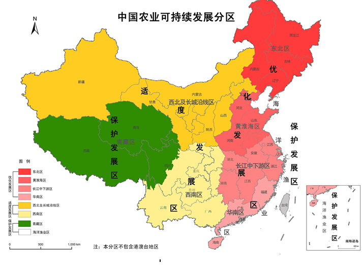 針對各地農業可持續發展面臨的問題,綜合考慮各地農業資源承載力、環境容量、生態類型和發展基礎等因素,將全國劃分為優化發展區、適度發展區和保護發展區。按照因地制宜、梯次推進、分類施策的原則,確定不同區域的農業可持續發展方向和重點。