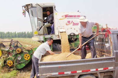 圖為河南省鄧州市農民正在機收小麥。本報記者張培奇通訊員(yuan)劉鈺攝