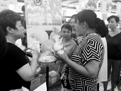 圖(tu)為消費者在(zai)物美新華聯店品嘗剛上市的馬(ma)鈴(ling)薯饅頭。本報記者王瑜攝