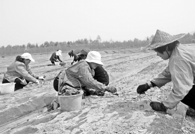 連日來,在浙(zhe)江(jiang)省玉環縣漩門灣濕地(di)公園5號地(di)塊,30多位花(hua)農有(you)的(de)(de)在薄膜(mo)上打孔,有(you)的(de)(de)扦插花(hua)苗,還(huan)有(you)的(de)(de)鏟畦溝壓(ya)農膜(mo)。