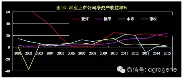 下表是A股8家上市種(zhong)業公司歷年(nian)(nian)的加(jia)權(quan)凈資產(chan)收益(yi)率,數據來源于(yu)招商證券智遠理財(cai)服(fu)務平(ping)臺(tai)。為了(le)(le)直(zhi)觀起(qi)見,同時(shi)繪制了(le)(le)8家公司歷年(nian)(nian)加(jia)權(quan)凈資產(chan)收益(yi)率的走勢圖,圖1a是登海、隆平(ping)、豐(feng)樂(le)、德農,圖1b是農發、敦煌、荃銀(yin)、神農基因。