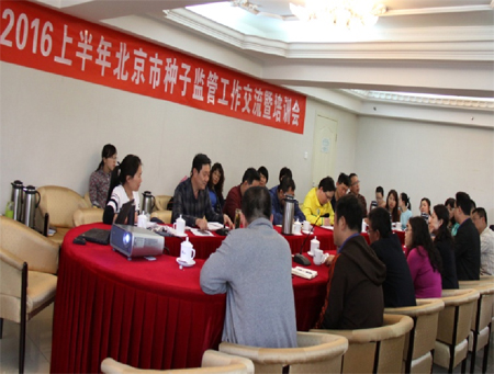 2016年4月20-21日,北京市種子管理站于西山實創科技培訓中心召開2016年上半年北京市種子監管工作交流暨培訓會,市站賈希海書記、質量管理科、行業管理科、市場管理科及來自11個區種子管理站的主管站長、檢驗科長等40余人參加了會議。