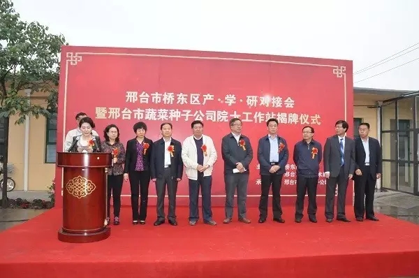 5月14日,邢臺市蔬菜種子公司(以下稱“邢申種業”)“院士工作站”揭牌儀式在公司育種中心隆重舉行。中國工程院院士方智遠、邢臺市人大副主任周世偉,市政府副秘書長李振奇、市科學技術局局長趙占平、副局長李文闊、橋東區委常委、區政府副區長趙忠鋒以及部分省種子商會會長、企業代表出席了活動。