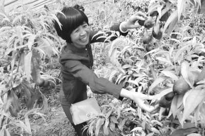 “這里的油桃色澤好,口感鮮,味道純正。我們專門從城里過來采摘,就是想吃這里綠色無公害的油桃!”正在大棚采摘油桃的王女士一邊摘油桃一邊高興地說。