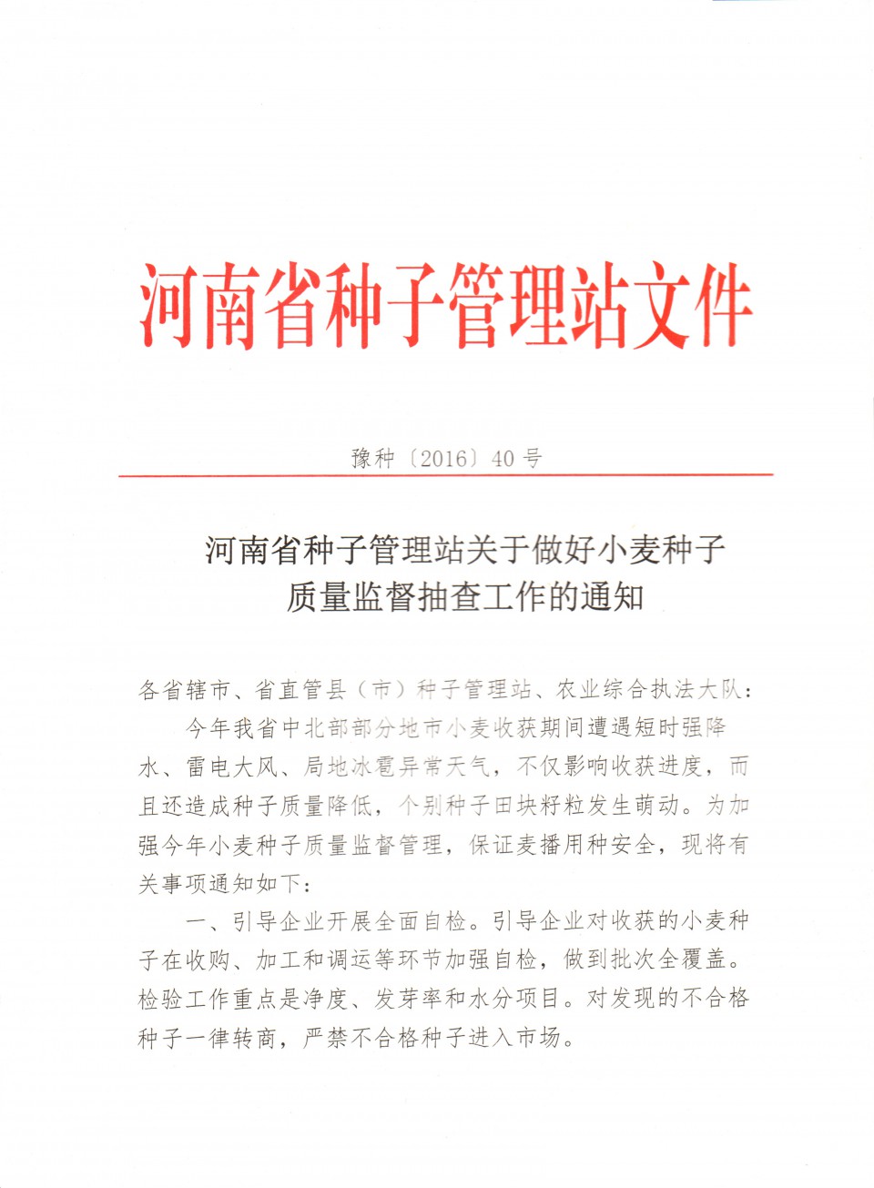 河南通知要求做好小麥種子質量監督抽查工作