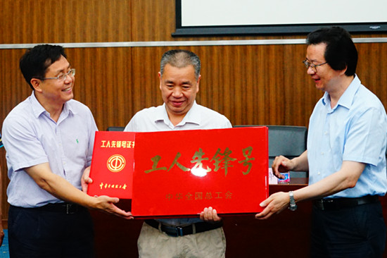 孫柏瑜代表中央國家機關工會聯合會宣讀了中華全國總工會表彰決定,對作物遺傳育種系榮獲“全國工人先鋒號”表示熱烈祝賀。