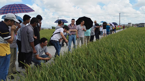7月7日,全市早稻新品種現場觀摩會在蒼南縣召開,各縣(市、區)種子(管理)站、種子技術推廣站、專業合作社、種糧大戶、市農科院和有關種子企業負責人共80余人參加會議,市委農辦(市農業局)副局長謝小榮和蒼南縣農業局副局長何國祥參加了會議。