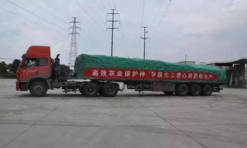 6月23日14點30分左右,一場巨大龍卷風災害侵襲了江蘇省鹽城市阜寧縣及其附近地區。龍卷風過后,到處殘垣斷壁,田塊受損嚴重,農民辛苦種植的水稻、玉米等倒伏嚴重。據初步了解,阜寧、射陽兩縣農作物倒伏2萬畝、積水1.6萬畝,給災區農業生產帶來巨大影響。在得知通往災區的道路疏通之后,華昌化工作為江蘇最大的化肥生產商,為幫助災區人民進行農業重建與恢復工作,決定贈送災區30噸化肥。7月7日下午3時許,30噸化肥在張家港廠區裝車完畢,即將送往阜寧、射陽等受災地區。