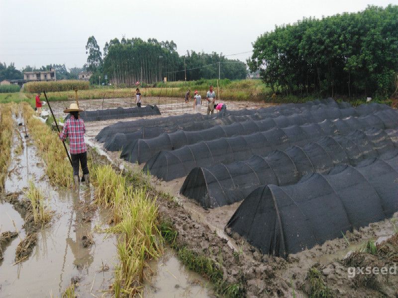 品種生產試驗和玉林市晚造田間種植鑒定圃播種工作。播種當天天氣反復無常,種子站工作人員克服困難天氣,播種采取透氣性薄膜育秧的方式進行,并按照試驗標準全程監督。