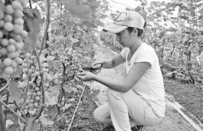 盛夏時節,在黑龍江墾區建設農場自營經濟基地的綠色葡萄園內,種植戶們冒著高溫天氣管理即將上市的“白雞心”“京秀”等品種葡萄,以提高葡萄的掛果率。據悉,農場引進的“白雞心”“京秀”兩個品種果穗大,果味醇厚,果肉硬而脆,果粒色澤鮮亮,產量高,抗病性較強,色、香、味指標都在其他品種之上,市場前景良好,效益可觀,平均每一棚葡萄收入均在1.2萬元以上。圖為種植戶正在為葡萄摘心修形。 許穎獻攝