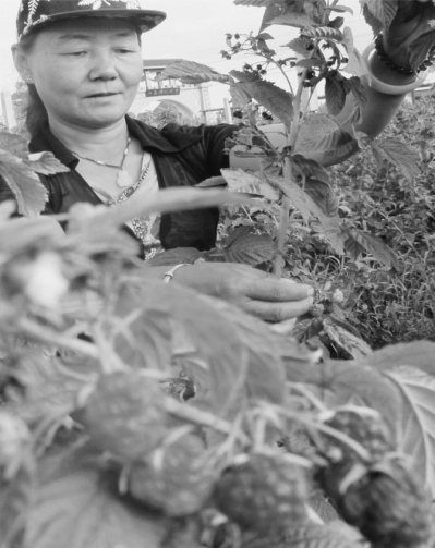 8月7日,新疆生產建設兵團第八師一四三團九女職工郭新霞正在忙著為客戶采摘樹莓。2013年11月,該團投資2萬多元,在素有“中國樹莓之鄉”美稱的遼寧省法庫縣引進1萬株樹莓苗,入冬前栽種在土壤透氣性好的10畝沙土地里,經過精心管理,試種獲得成功并于去年開始掛果,今年己進入盛果期,畝產量超過1000公斤,以每公斤市場價160元,畝效益可達15萬元。 王仁斯攝