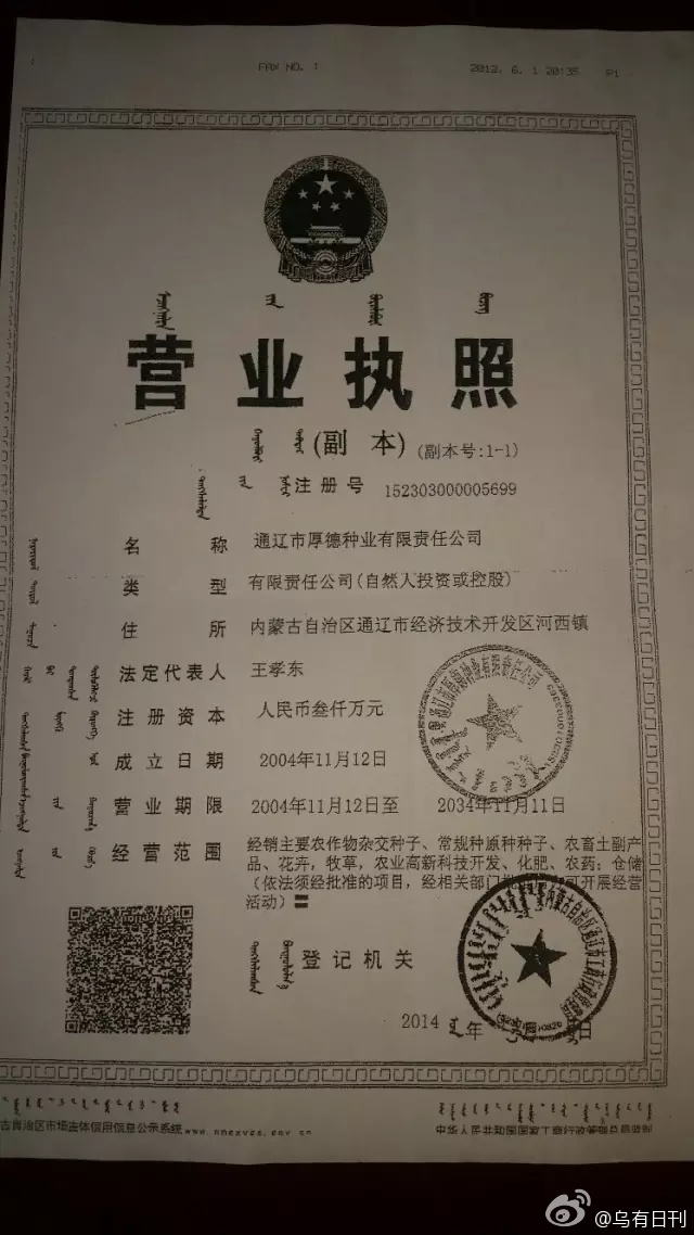 鑒于通遼市厚德種業有限責任公司,涉案金額500余萬元,故我公司特向貴局報案,望貴局查清事實,以打擊犯罪,維護我合法利益為盼!