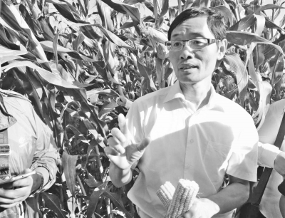 北京農學院教授潘金豹正在講解青貯玉米特性。