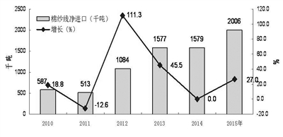 今年(nian)(nian)(nian)棉(mian)花的產(chan)量(liang)、價(jia)(jia)格、質量(liang)很多(duo)指標讓整個市(shi)場措手(shou)不及。而國(guo)(guo)家棉(mian)花產(chan)業技(ji)術體(ti)系/中(zhong)國(guo)(guo)農科(ke)院(yuan)公布的“2016年(nian)(nian)(nian)中(zhong)國(guo)(guo)棉(mian)花生(sheng)產(chan)景氣報告(gao)”顯(xian)示,由于國(guo)(guo)際棉(mian)價(jia)(jia)遠(yuan)低(di)于國(guo)(guo)產(chan)價(jia)(jia),棉(mian)紗線進口增長(chang)迅速,2010—2015年(nian)(nian)(nian)6年(nian)(nian)(nian)合計凈進口734.5萬噸(dun),比前6年(nian)(nian)(nian)合計凈增527萬噸(dun),增長(chang)254%。