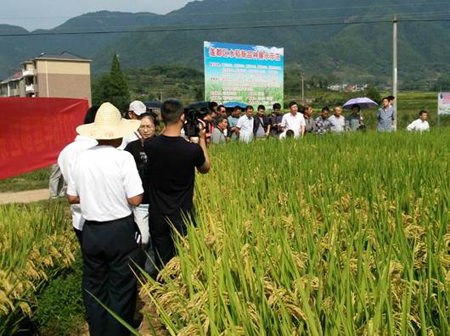 9月23日麗水市蓮都區農業局組織召開“雜交水稻新品種現場觀摩會”,來自市農業局、農科院有關專家、全區基層農技干部和局屬種子、糧油、植保、土肥等相關專業技術人員和糧油養生基地負責人、種糧大戶等60多人參觀考察了由蓮都區種子管理站在麗新鄉咸宜村組織實施的“2016年蓮都區雜交水稻新品種展示示范”基地。與會代表實地考察了各個品種的表現,聽取了實施單位對實施過程和各個品種的介紹,對品種展示示范基地眾多新品種出色表現表示出極大的興趣。市農業局有關專家和區農業局總農藝師對今后我區水稻新品種的推廣應用工作以及品種推廣與養生農業發展相結合提出了意見和要求。