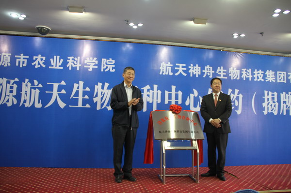 簽約儀式結束后,舉行了濟源航天生物育種中心揭牌儀式。