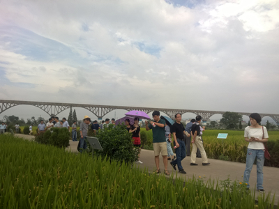 9月27日下午,全省晚稻新品種現場觀摩會代表共80多人專程來到位于芝英鎮橋里村的省級單季水稻新品種示范展示基地,開展了單季水稻新品種的現場觀摩考察活動,永康市農林局局長應加興、總農藝師成其倉陪同橋里現場考察。