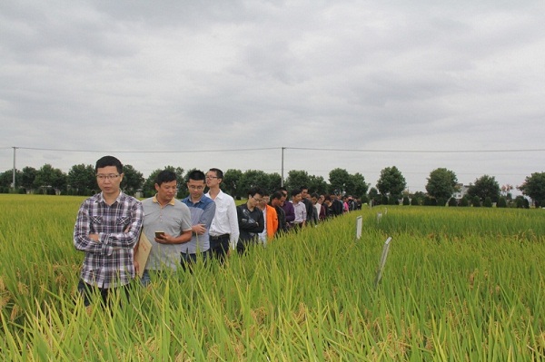 與會代表考察了三甲街道堅決村省級單季稻新品種示范方和章安街道柏樹里村連晚新品種機插示范,現場觀摩了甬優7850、甬優8050和甬優4550等新品種機插示范,察看了浙優21、甬優7860等15個新品種展示田和7個新品系的試種情況,大家觀看各品種田間長相,了解品種的高產潛力和適應性及抗災表現,并現場交流看法。