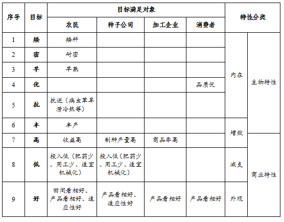 作物育種目標的分解和分類